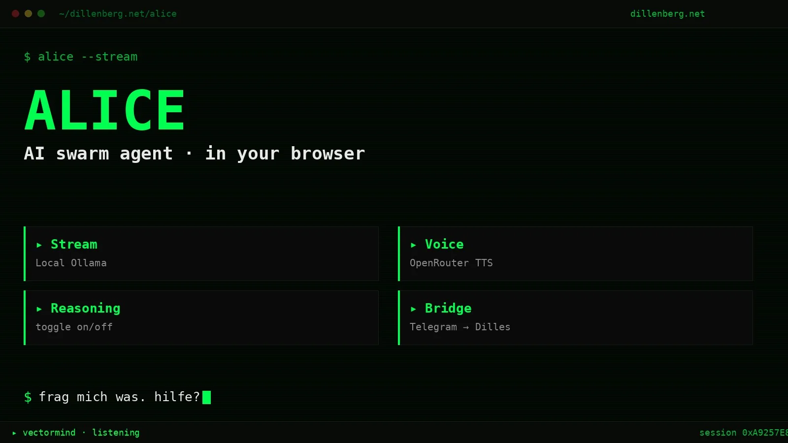 Arbeite zwischen klassischer Softwarearchitektur, Embedded-Systemen, generativen Verfahren und künstlerischer Installation. Eigener Stack: Cloudflare, Nextcloud, SIP, lokale GPU-Inferenz.